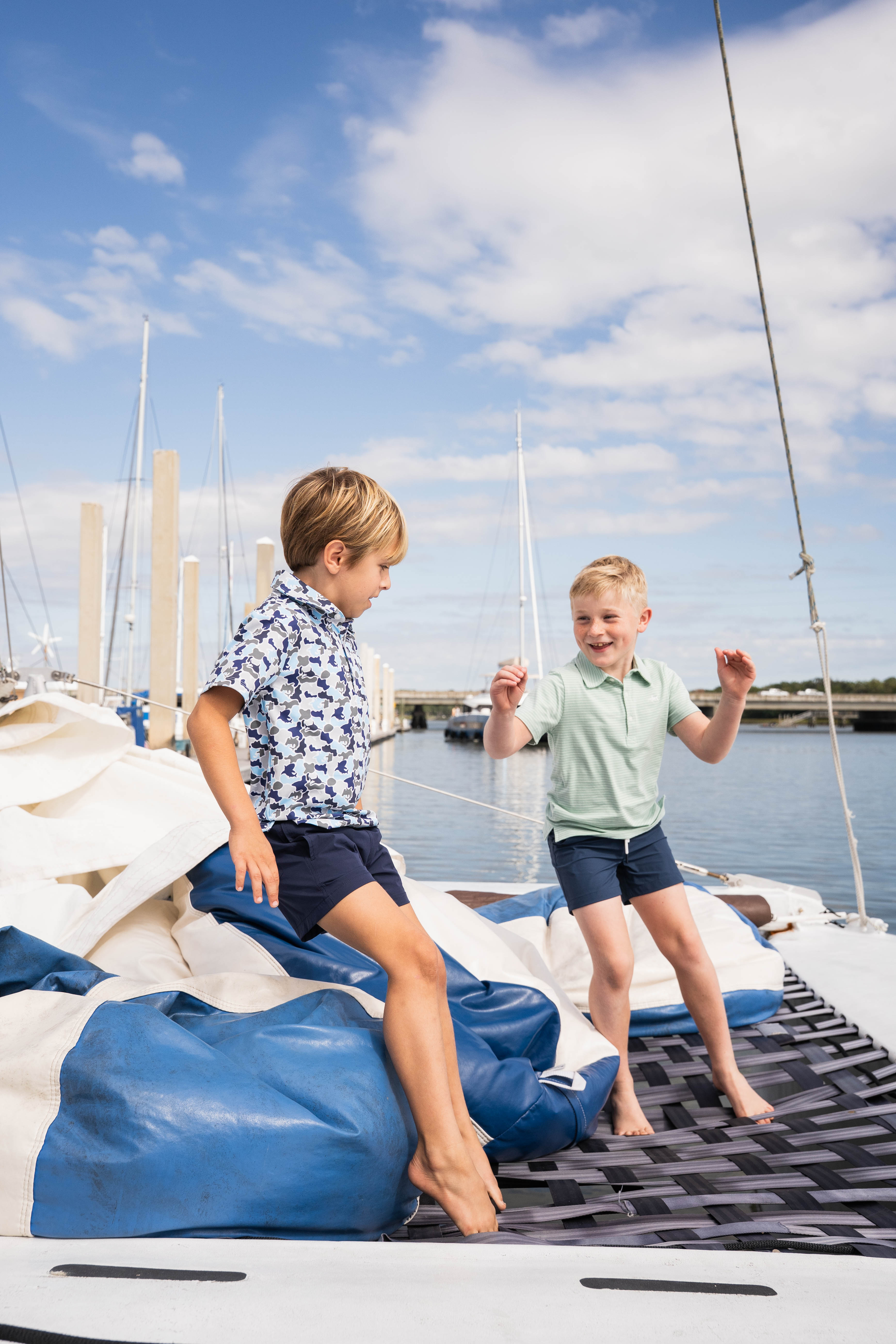 These versatile boys’ shorts move effortlessly from the playground to dock side.