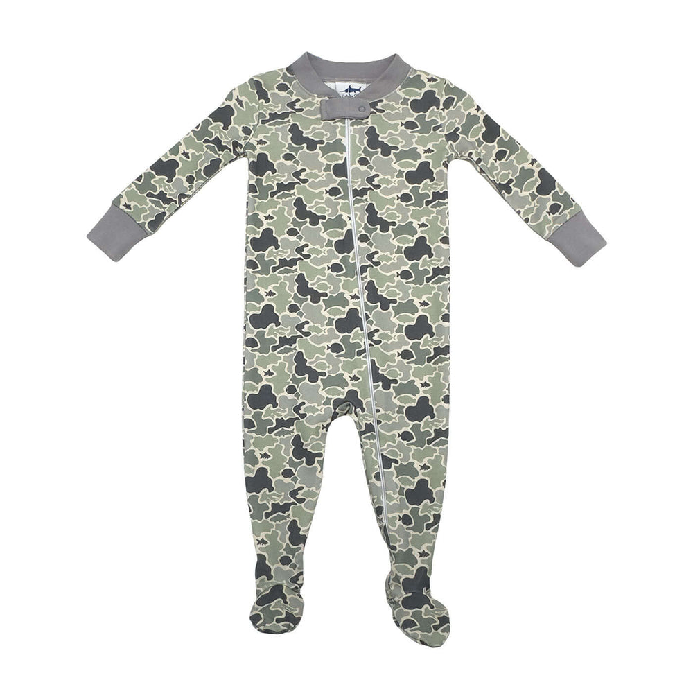Crafted from our softest 100% Peruvian Pima cotton, the Mackay Pima Romper in Camo offers buttery-soft comfort perfect for your little Saltwater Boy. Featuring a convenient zipper and snap closure at the top, it ensures easy dressing and a snug fit all year long. The subtle hidden fish camo print adds an extra touch of adorable style to this must-have romper.